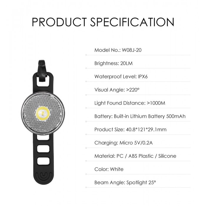 Фара с вибродатчиком GACIRON W08J-20 20 LM Micro USB 500mAh 07-300165