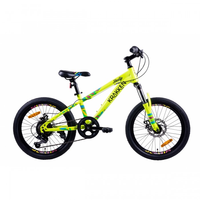 Если вам нужен яркий, надежный и функциональный детский велосипед, KRAKKEN Skully 20" в желтом цвете — отличный выбор!